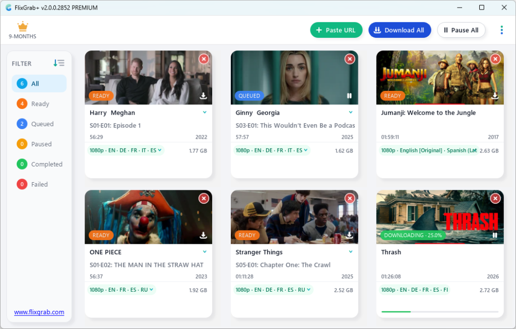 Add Netflix video URL via “+Paste URL” button.